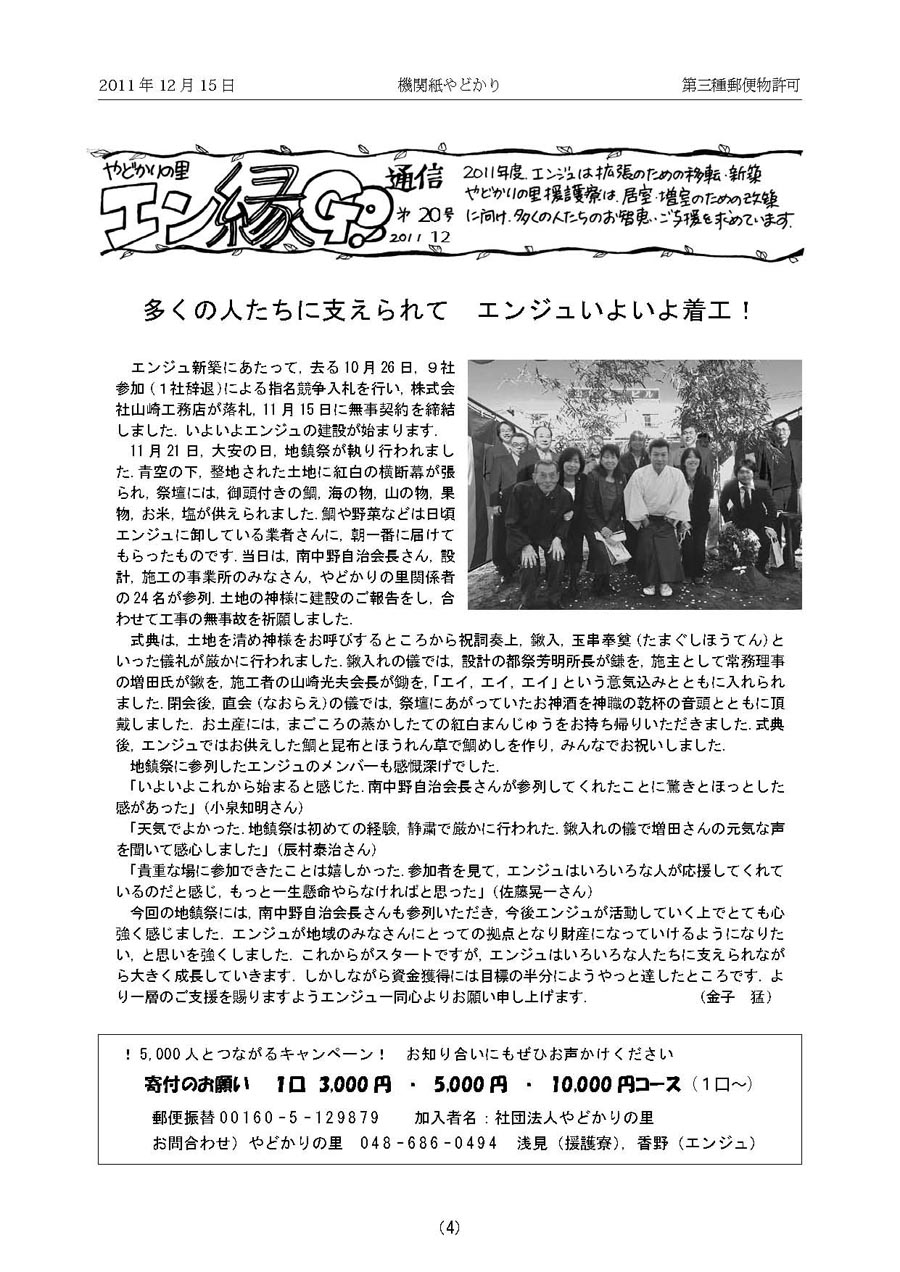 第20号 多くの人たちに支えられて エンジュいよいよ着工!