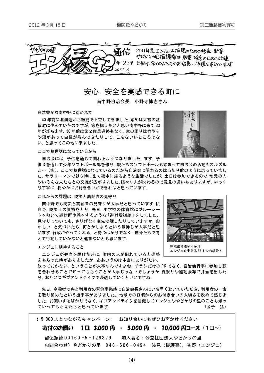 第23号 安心,安全を実感できる町に 南中野自治会長のお話