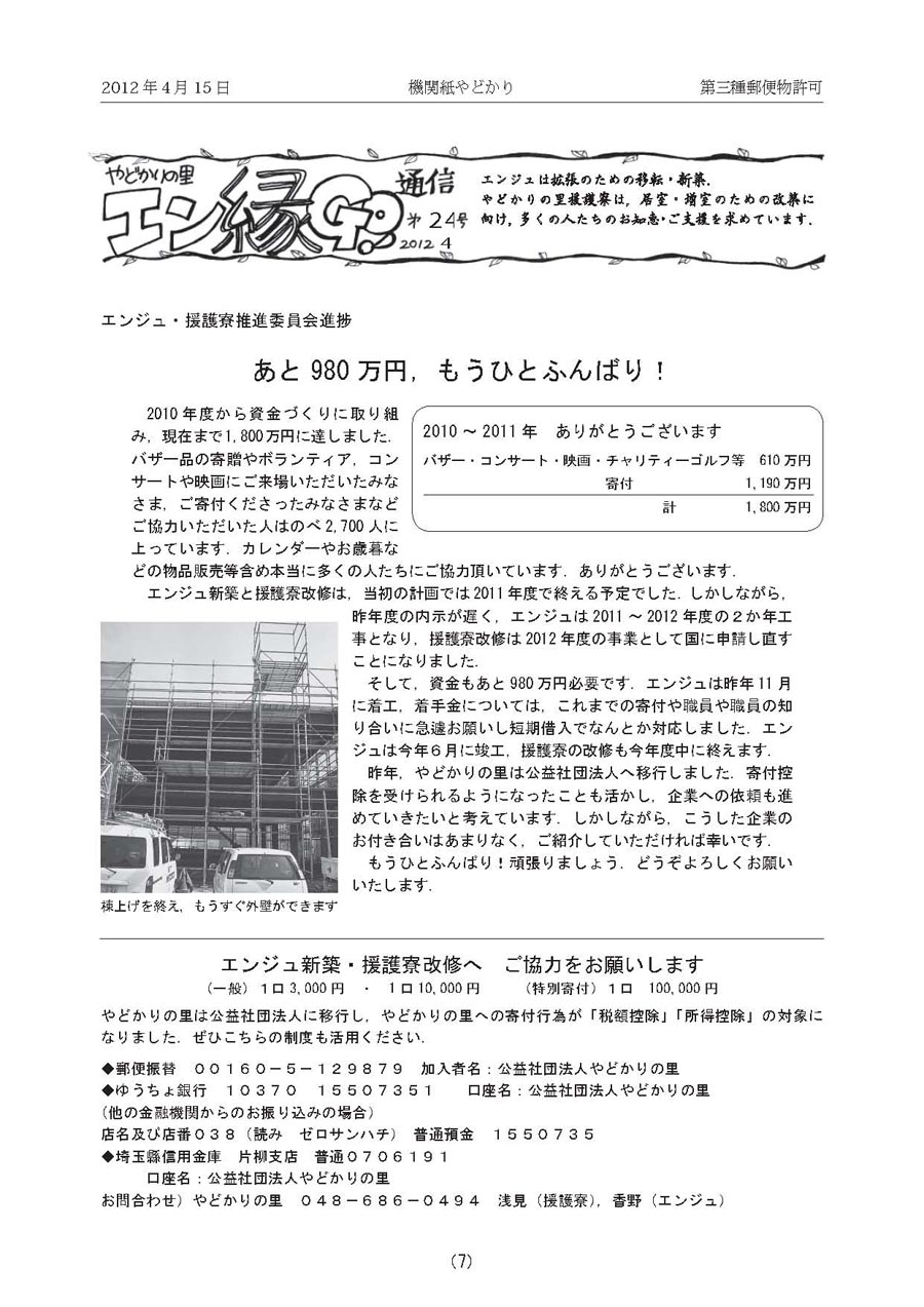 第24号 あと980 万円,もうひとふんばり!